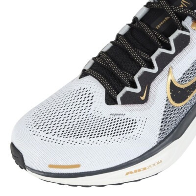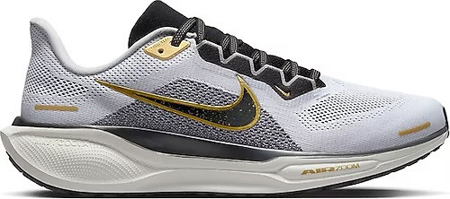 کفش نایکی ایر زوم پگاسوس 41 مدل HQ3220-100 با رنگ سفید و طلایی، مناسب دویدن و استفاده روزمره. طراحی سبک، زیره راحت با فناوری Air Zoom و دوام بالا. انتخابی عالی برای ورزش و استایل روزانه.