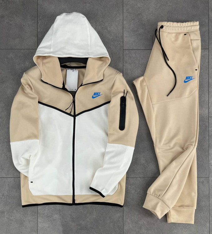 ترکیب رنگ کرم و سفید با لوگوی آبی نایک.