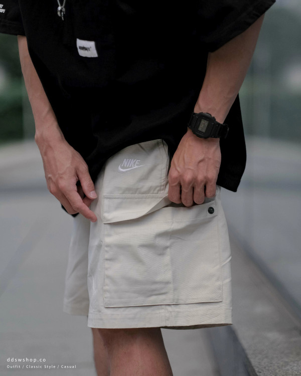 شلوارک مردانه Nike Club Cargo Shorts (FB1247-104) یکی از محصولات اورجینال نایکی است که با طراحی Cargo و پارچه مقاوم Ripstop برای استفاده روزمره و فعالیتهای سبک ورزشی ساخته شده است.