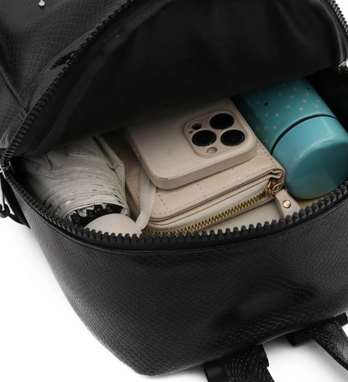 این کوله از جنس چرم مصنوعی با بافت پوستماری تولید شده که در برابر آب مقاوم بوده و بهراحتی تمیز میشود