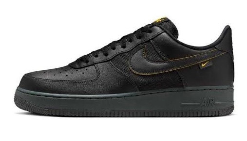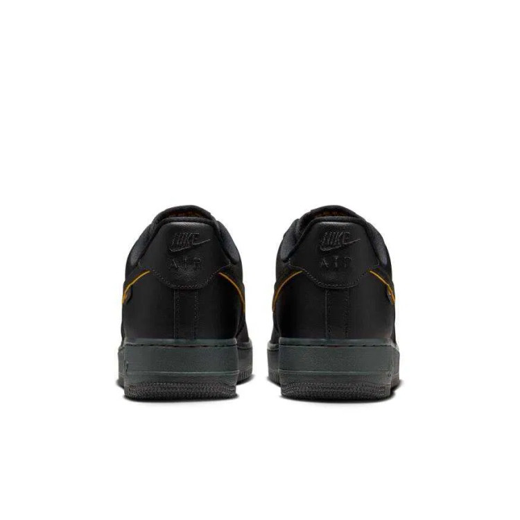 کفش مردانه نایکی Air Force 1 مدل FZ4617-001 با ترکیب رنگ مشکی و طلایی، انتخابی خاص و شیک برای استایل خیابانی و روزمره. ساخته شده از رویه چرمی با کیفیت، کفی نرم و فناوری Air برای راحتی و دوام بالا.