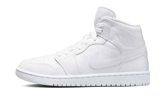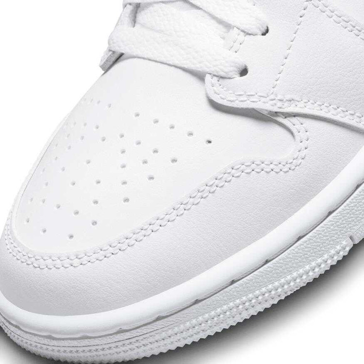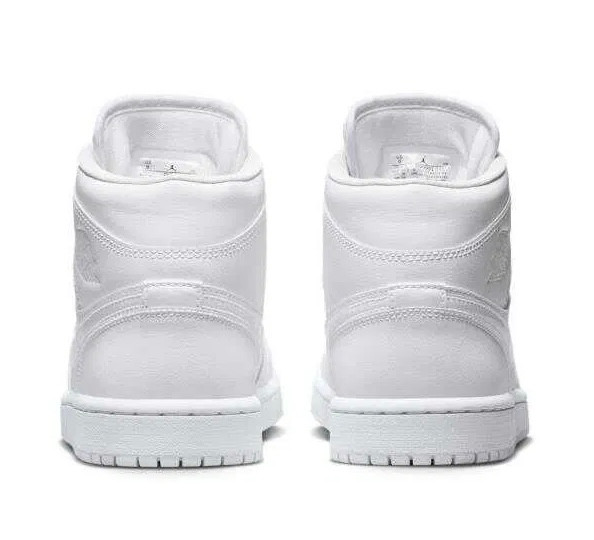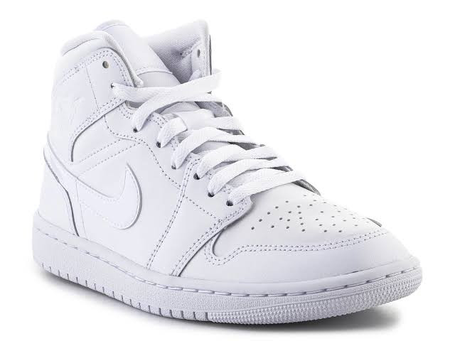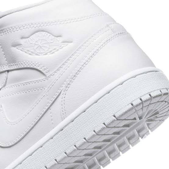 کفش اسپرت و کلاسیک نایکی Air Jordan 1 Mid Triple White با رنگ سفید یکدست، مناسب استایل روزمره و ورزشی. رویه چرمی باکیفیت و کفی راحت برای استفاده طولانیمدت